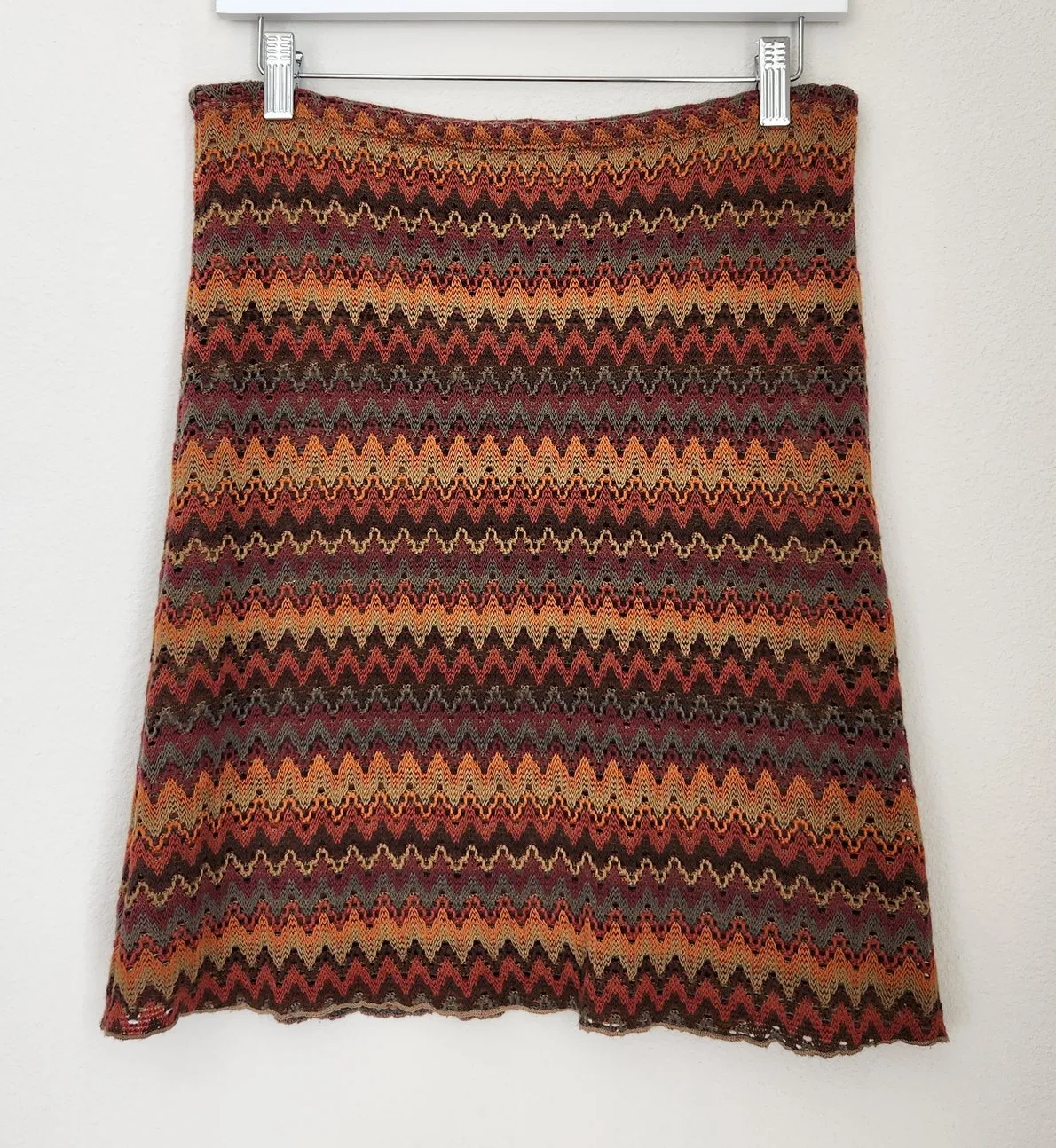 In excellent vintage condition, a Y2K era zig zag chevron mini skirt in fall tones by Xhilaration. F... Show more