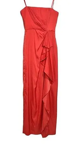 BCBG MaxAzria Ila Strapless Coral Satin Evening Dress Draped has built in boning and support. It zip... Show more