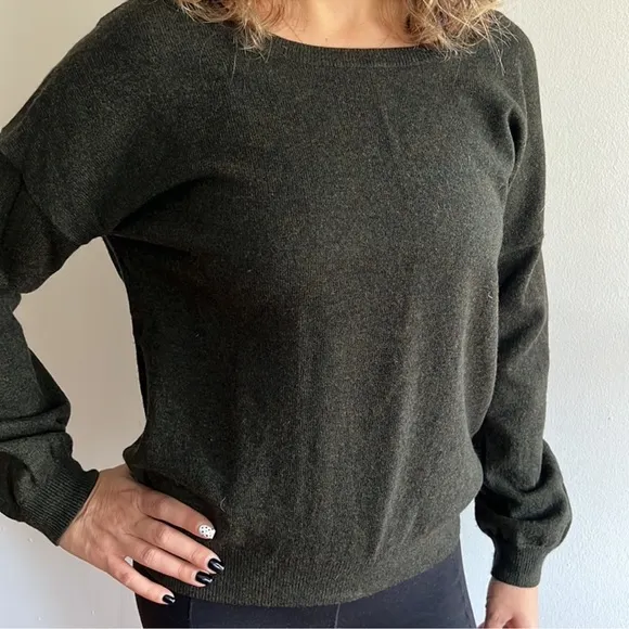 Used in good condition Small size Dark green melange color Boot neck and v neck back detail Wool cas... Show more
