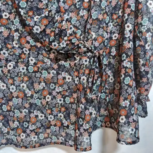 Creation L Floral Ruffle Faux Wrap Blouse Chic Size XL Chic floral blouse with ruffle details. Perfect for any occasion. Floral printed blouse in a flattering, fixed wrap style with V-neck and ruffles. The soft elastic at the back and tie bands at the front accentuate the waist Semi sheer Gently worn Brand and Size tag has been removed approximate measurements pit to pit 23" length 26"