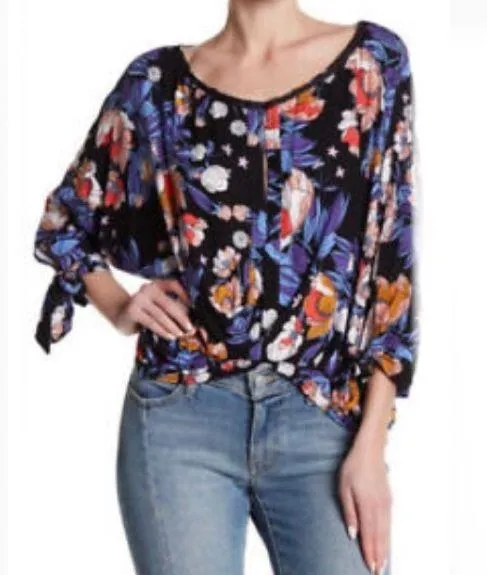 Free People Printed Keepin On Tee. Bold colorful floral print top. Button closures down front. Surpl... Show more