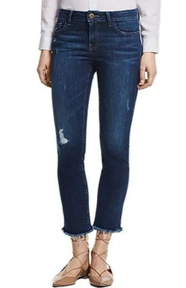 DL1961 Mara Instasculpt Straight Leg Dark Wash Jeans Excellent used condition, no visible signs of wear. - Zip & button closure - Leg distressing - Raw, fringe hem - Straight leg - Ankle cropped length - Mid rise waist - 93% cotton 6% polyester 1% lycra Measurements: - Waist 14.5 - Rise 8.5 - Inseam 25 - Length 35 All items come from a smoke & pet free environment and ship same or next business day.