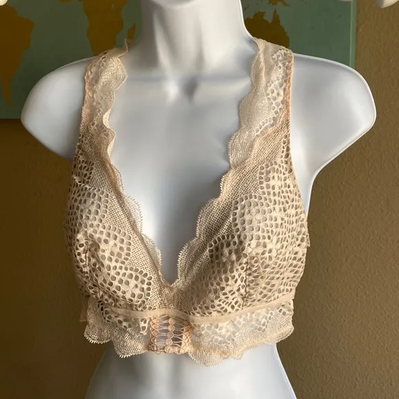 Victoria’s Secret Very Sexy sheer blush pink champagne cream colored all over lace bralette Women’s... Show more