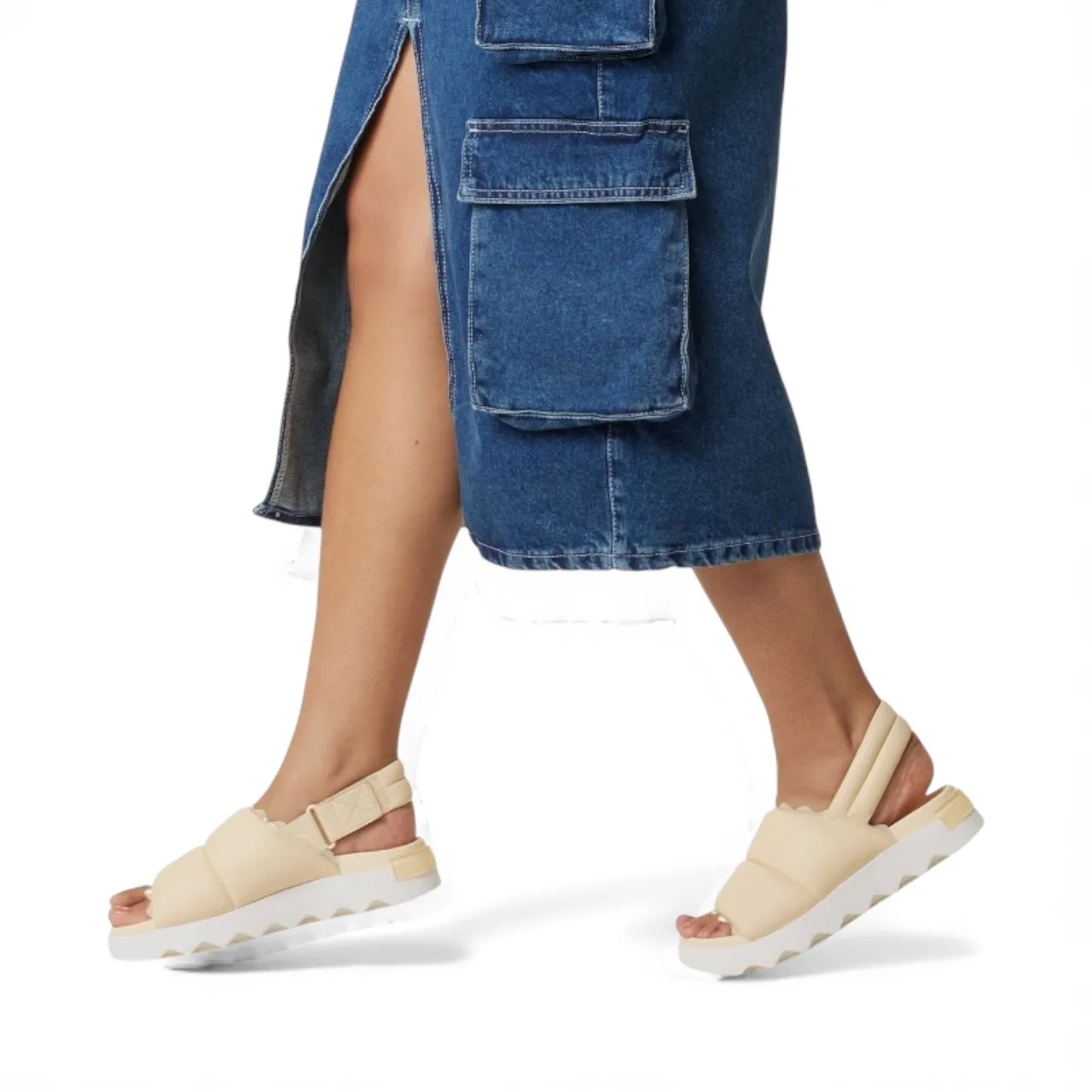Picturing the Viibe Slingback Sandals from Sorel in Honey White. Modern, cushioned, and easy to wear... Show more