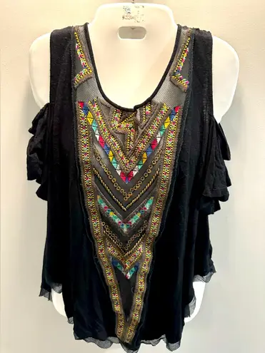 Free People Cold shoulder love spell top Tribal print Keyhole back Oversized XSmall O47