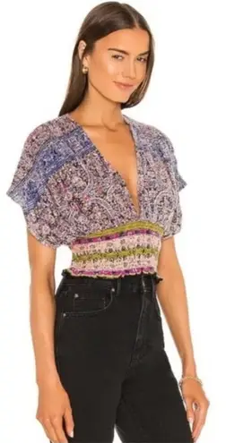 Free People Purple Next Vacation Smocked Cropped Boho Top Size XS