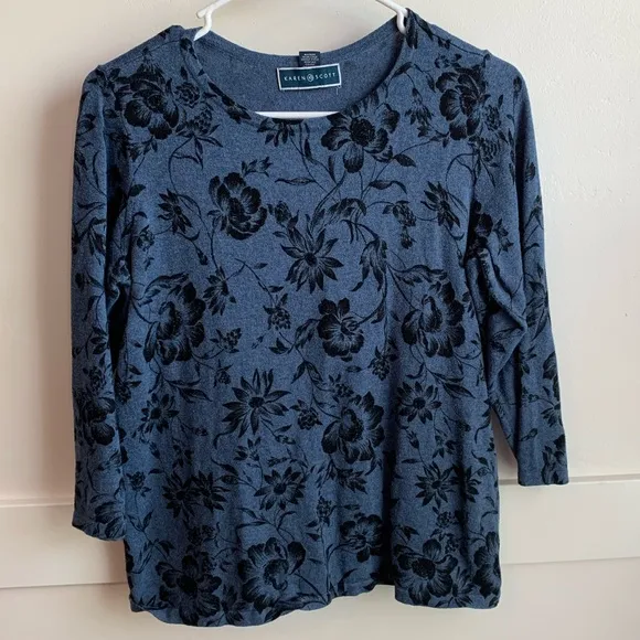 Karen Scott Blue and Black Floral Printed Quarter Sleeve Shirt Size XS - $8 (68% Off Retail) - From Hayley