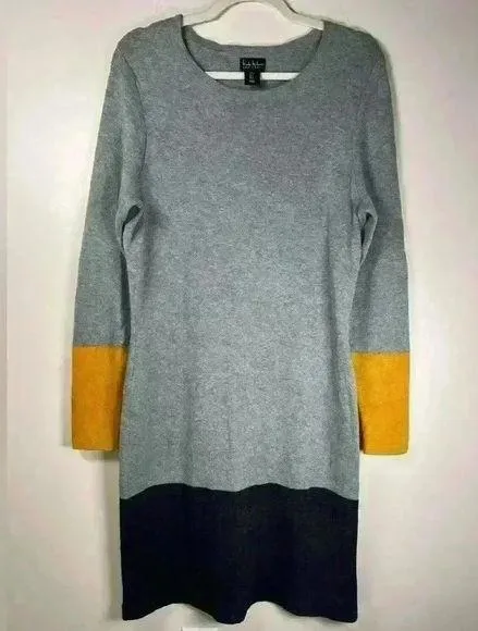 Nicole Miller Colorblock Dress Women’s Size Large. Gray, black and golden yellow. Long sleeves, soft... Show more