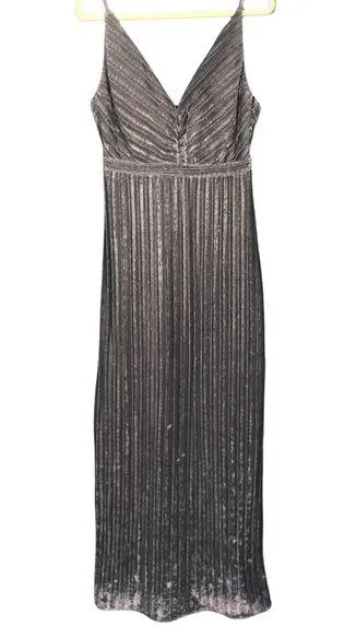 Pre owned. Very good condition. WOMENS size 12. Spaghetti strap maxi dress. Black dress with silver... Show more