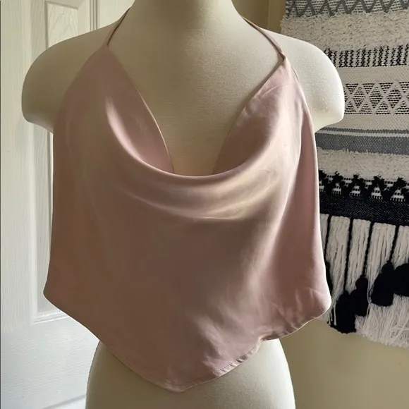 Chic Satin halter crop top. Soft pink fabric. Perfect for casual outings.