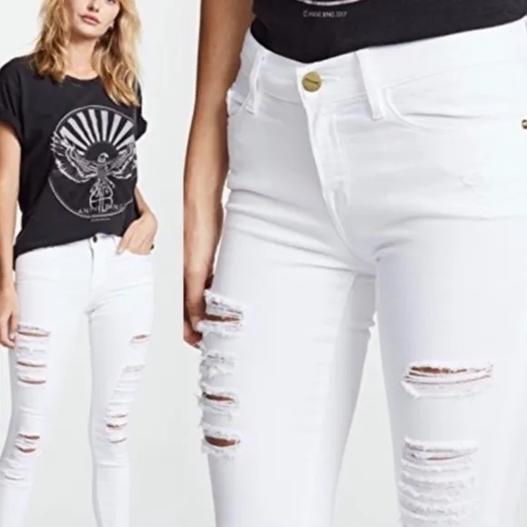 Frame NWT Le High Rise Skinny Destructed Blanc Rip Jeans Size: 25 Style: Le High Skinny Color: Bl... Show more