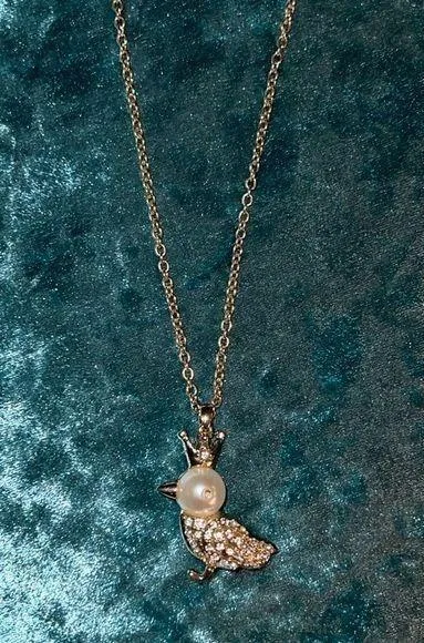 Liz Claiborne Beautiful Bird w/ Crown Necklace 18” Pearl Head & Gem Stone Body - $16 New With Tags - From Rachel