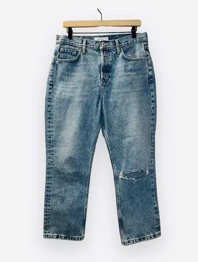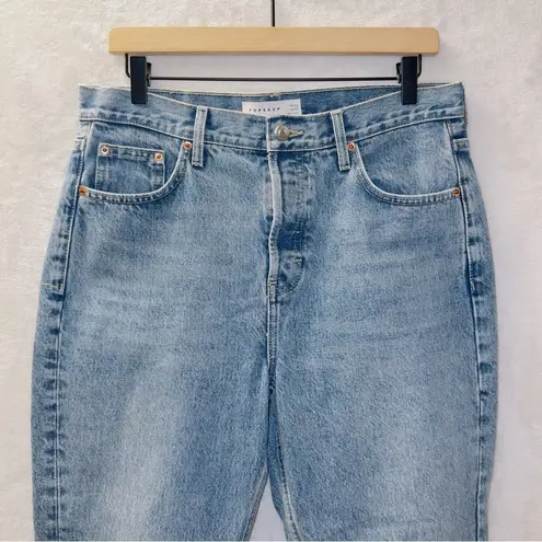 Topshop Light Wash Denim High Rise Button Fly Straight Leg Mom Jean Condition: good preowned condi... Show more