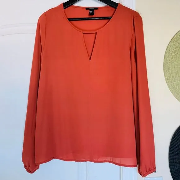 Forever 21 Women's Rust Red Long Sleeve Silk Blouse with Front Keyhole Detail Size: L Brand: Forever... Show more