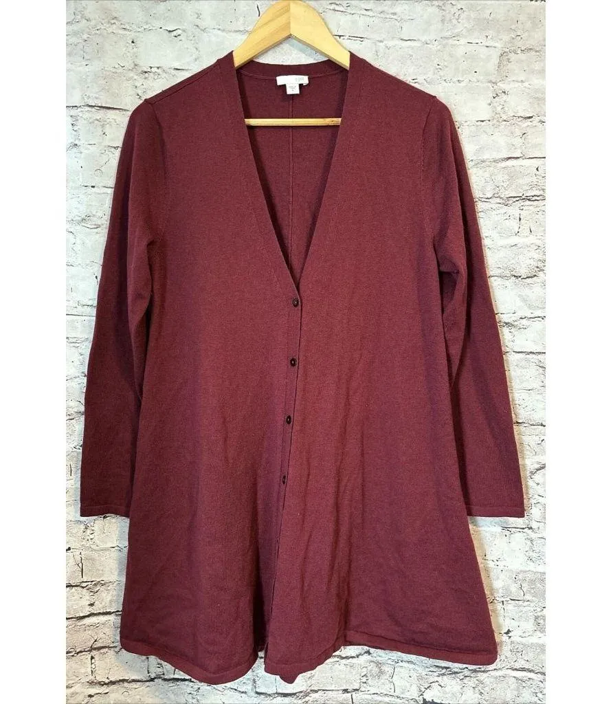 Stay warm and stylish with this J. Jill Burgundy Cardigan Sweater. Made from a polyester-wool blend, this mid-size, v-neck women's cardigan is perfect for any outfit. • Brand: J. Jill • Color: Burgundy • Size: M • Style: Cardigan • Made from a blend of polyester and wool Chest: 19" Length: 32" 52% Polyester, 30% Wool, 18% Nylon Very good preowned condition.