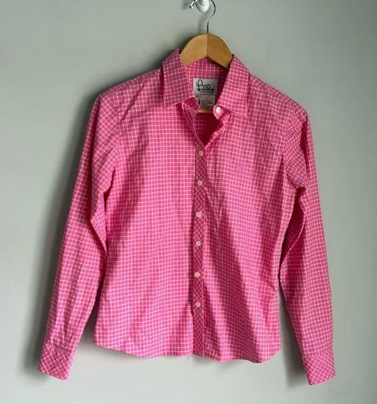 Excellent used condition Button down closure Checkered plaid print 100% cotton Long sleeves button... Show more