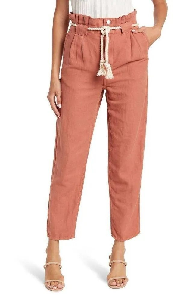 NEW! Veronica Beard Karter Paperbag Linen Blend Casual Crop Pants US 4 Red - $120 New With Tags - From kay