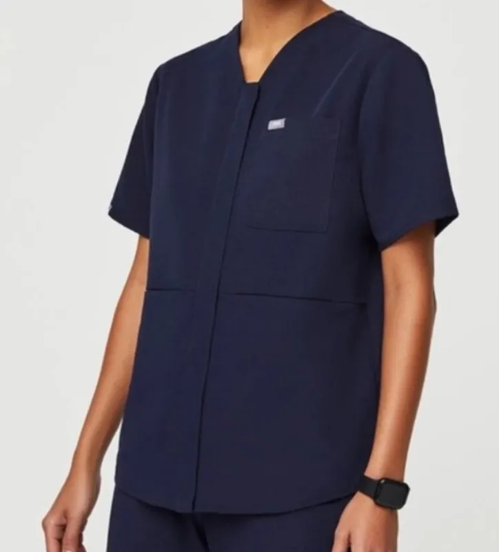 FIGS Women's size XS Navy Blue Masaya Full Zip Short Sleeve Scrub Top. FIGS brand women's scrub top... Show more