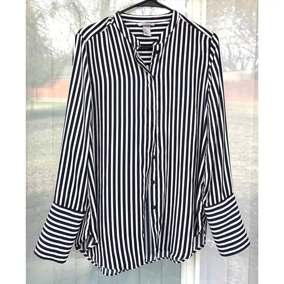 Professional but fun!! The wrist cuffs have a fun diagonal cut and horizontal stripes The buttons h... Show more