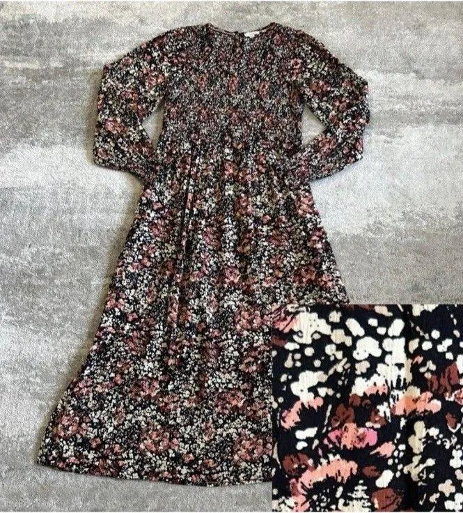 Fat Face Dress Womens 8 Floral Print Midi Pockets Long Sleeve Black Pink - $35 - From kelli