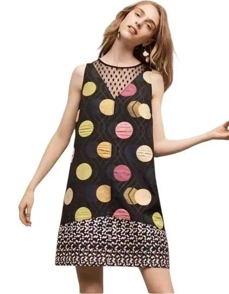 Anthropologie Maeve Tilde Metallic Polka Dot Dress Navy Size S Excellent pre owned condition Met... Show more