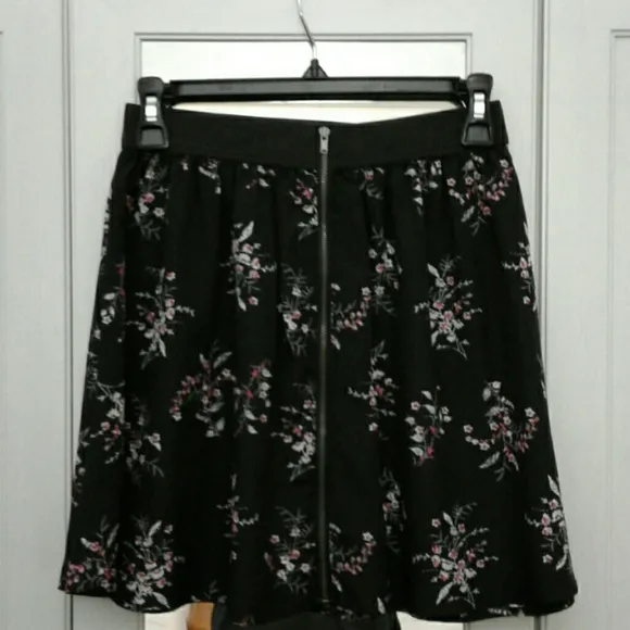Black skirt with flower print. Contains a zipper along the front. Material ( thin material ) 100% P... Show more