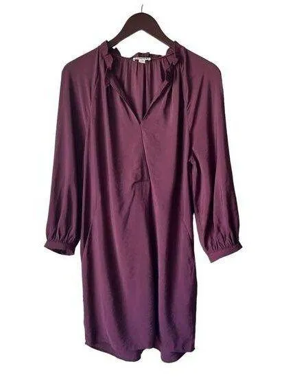 Whistles Women's Enola Sack Dress Long Sleeve Ruffled Neck Burgundy Size Small * Condition: Preown... Show more