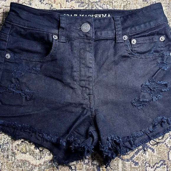American Eagle Hi-Rise Festival black denim shorts. Sz.4 Distressed Excellent condition