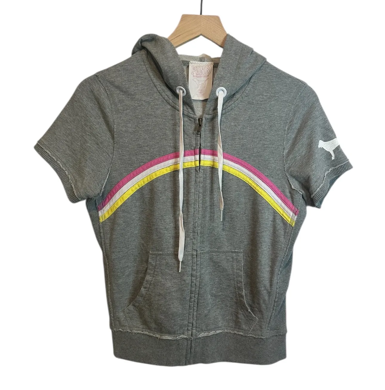 Victoria’s Secret Pink Medium Retro Vintage Y2K Rainbow Short Sleeve Zip Hoodie Rare find! Grey hoo... Show more