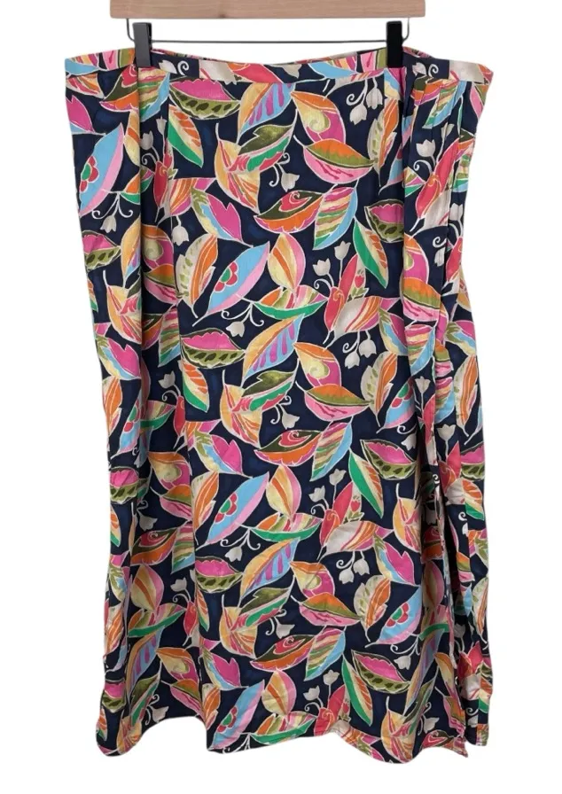 Vintage Y2K 2000s Talbots Woman Long Corduroy Skirt Navy blue with colorful floral leaf print desig... Show more
