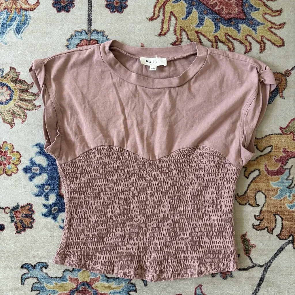 MABLE Light Mauve Nissa Smocked Short Sleeve Top Large Cropped Purple - $22 - From Daniela