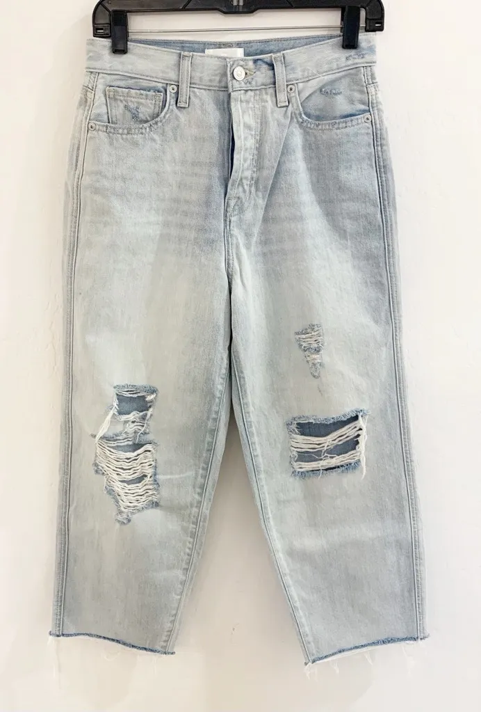 7 For All Mankind Balloon High Waist Distressed Raw Hem Jeans Size 26 Light wash denim Wide straigh... Show more