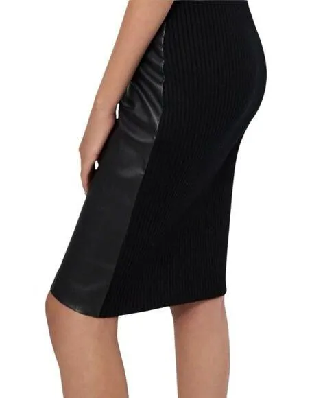 NEW Theory $495 Urban 100% Lamb Leather Black Mixed Medium High Waisted High Rise Ribbed Stretch Me... Show more