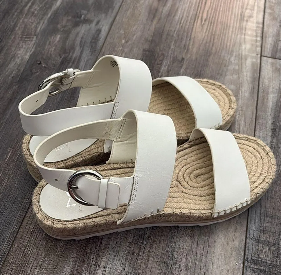 White leather espadrille sandals Leather is cracking on interior near the strap Preowned