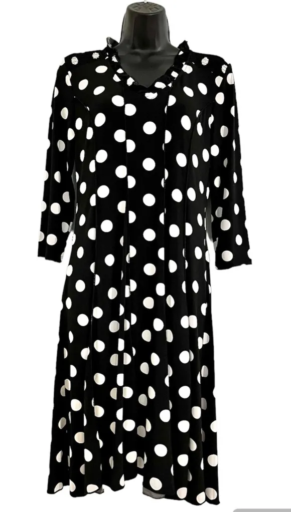 V neckline with ruffle detail 3/4 sleeve Midi Length about 37”