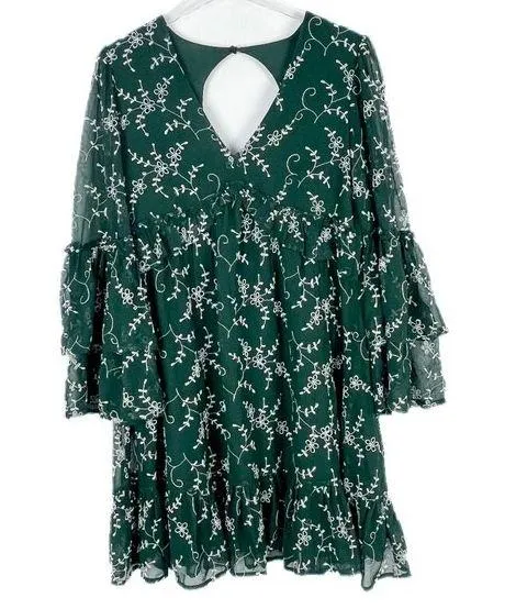 GORGEOUS Coast Floral Embroidered Bell Sleeve Ruffle Hem Dress! dramatic bell sleeves v-neckline co... Show more