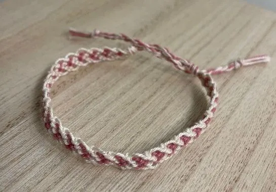 A handmade bracelet or anklet woven with shades of pink and cream colors. A friendship or statement... Show more