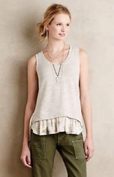 Anthropologie Deletta Dava Gray Floral Layered Tank Top Good used condition, minimal signs of wear.... Show more