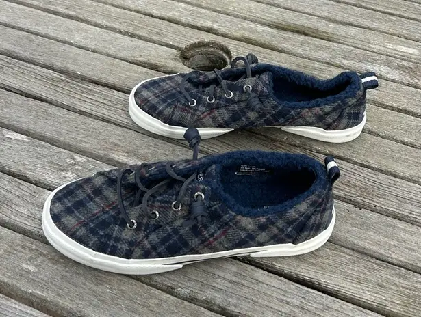 Sperry Womens Pier Wave LTT Teddy Wool Navy plaid Sneaker 7 Minor marks on sole as shown, worn once... Show more