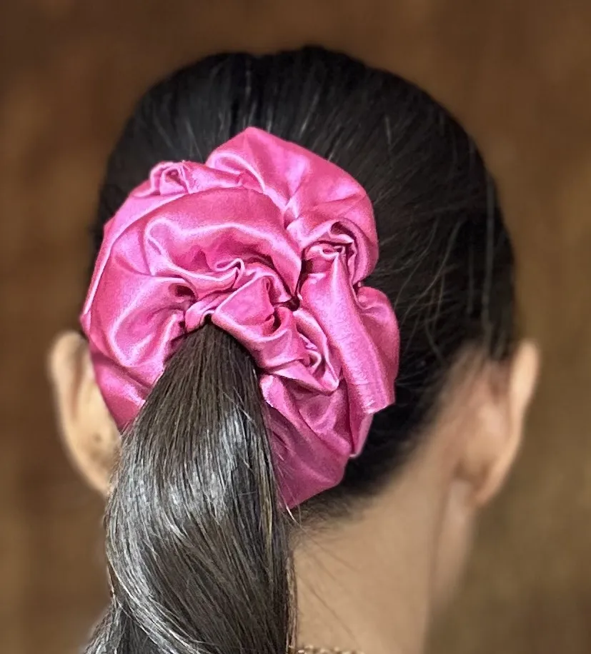 Pink Silk Hair Scrunchie large New Handmade by me Made of a soft, silky fabric, gentle on hair, versatile accessories suitable for various hairstyles and occasions. #scrunchie #scrunchies
