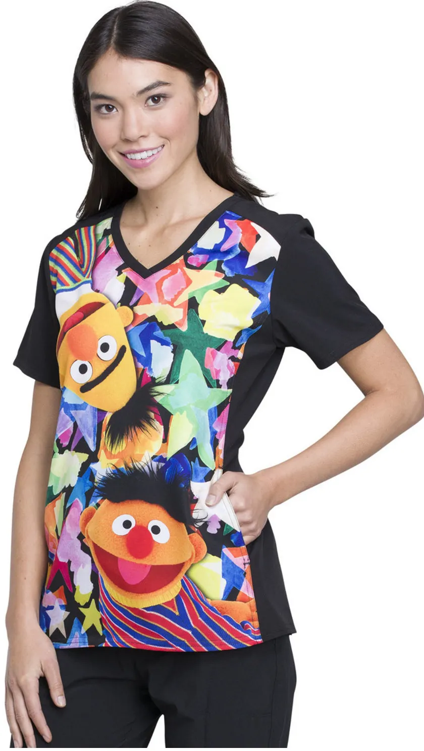 Sesame Street Bert Ernie 50th Anniversary Scrub Top Women’s Nurse V Neck Pockets Medium This item... Show more