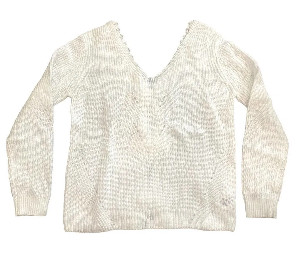SHEIN V-Neck Knit Sweater with Bow Accent in White, Size M Back cutout Back bow accent V neck New... Show more