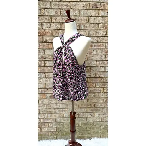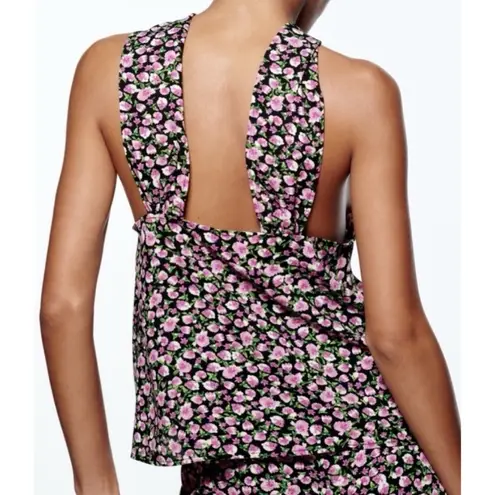 -NEW WITHOUT TAGS -Zara Twist Front Keyhole Tank Top -Size: Small -Color: Black with purple floral p... Show more