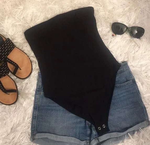 Very good preloved - Forever 21 Ladies Summer Layering Black Strapless Tube Top Bodysuit Black Fore... Show more