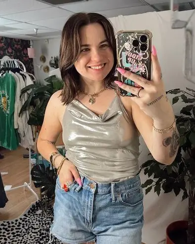 By Anthropologie Cowl-Neck Shine Halter Tank Small Metallic Cowl neck Halter Open back Cropped Pul... Show more
