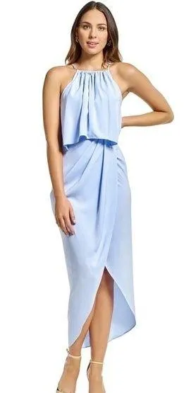 Shona Joy’s signature draped maxi dress ticks all the boxes in an elegant curve-skimming fit. Featuring a frilled bodice overlay, high drawstring neckline and beautiful Elysian cornflower blue hure, it’s the perfect piece to rent for bridal parties or race day weekend dress. Fitted style Back neck tie High low hemline Polyester Cornflower blue Chest: 16” Length: longest-58” ***rip at zipper seam - can be repaired