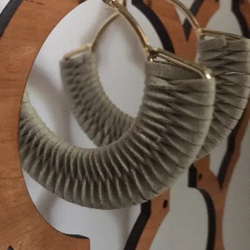 Shiny metal meets a woven faux suede in these hoop earrings, giving you the perfect accent piece to complete your weekend looks. Color: Ivory Hoop earrings Clasp closure 2" drop Polyurethane/Iron Lead and nickel free Bundle items for greater discounts. Due to the lighting item’s color may vary slightly from pictures. Thank you for checking out my listing.