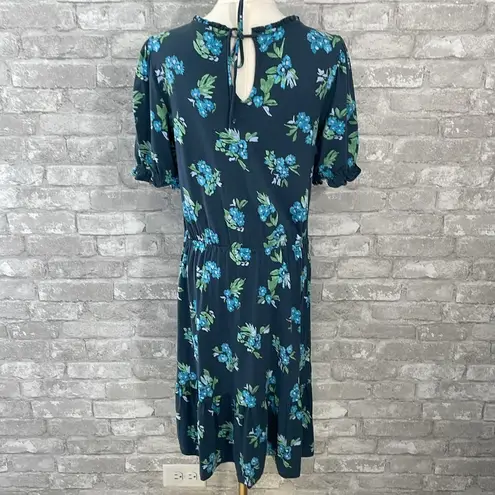 Loft Navy Floral dress Ruffled Scoop neckline Tie back closure Short puff sleeve Elastic waistband