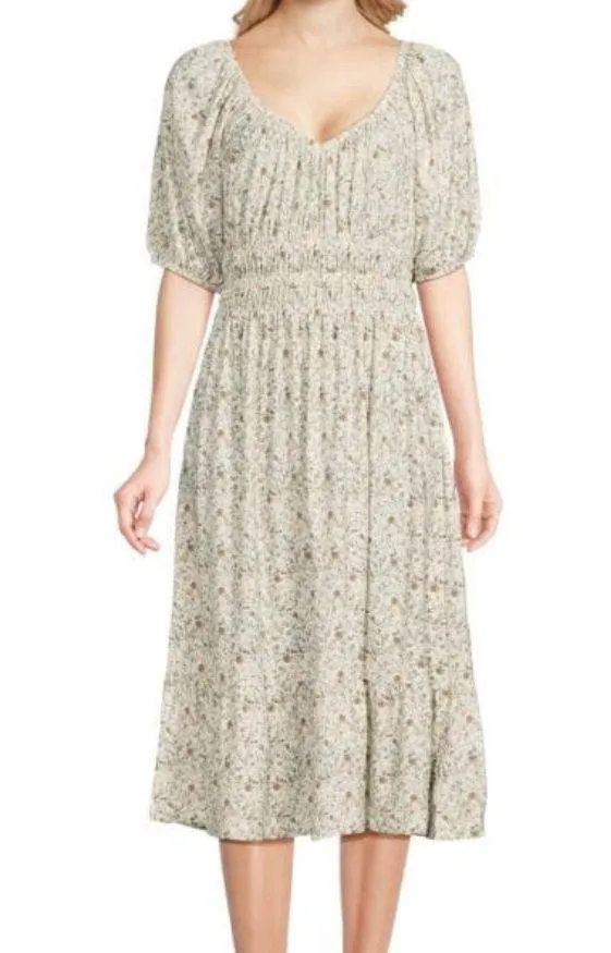 Nation LTD’s Fabia floral Pima cotton midi-dress is styled with a V-neckline, puffed elbow sleeves, and a smocked waist. The flared skirt moves gracefully with each step. NEW WITH TAGS V-neck Elbow-sleeves Elasticized neck & cuffs Pulls over Smocked waist Flared silhouette Pima cotton Machine wash