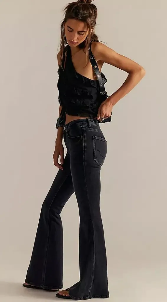 Free People Size 26 Washed Black Low Rise Slim Leg Flare Jeans Stretch Casual Good, Pre-Owned Condi... Show more